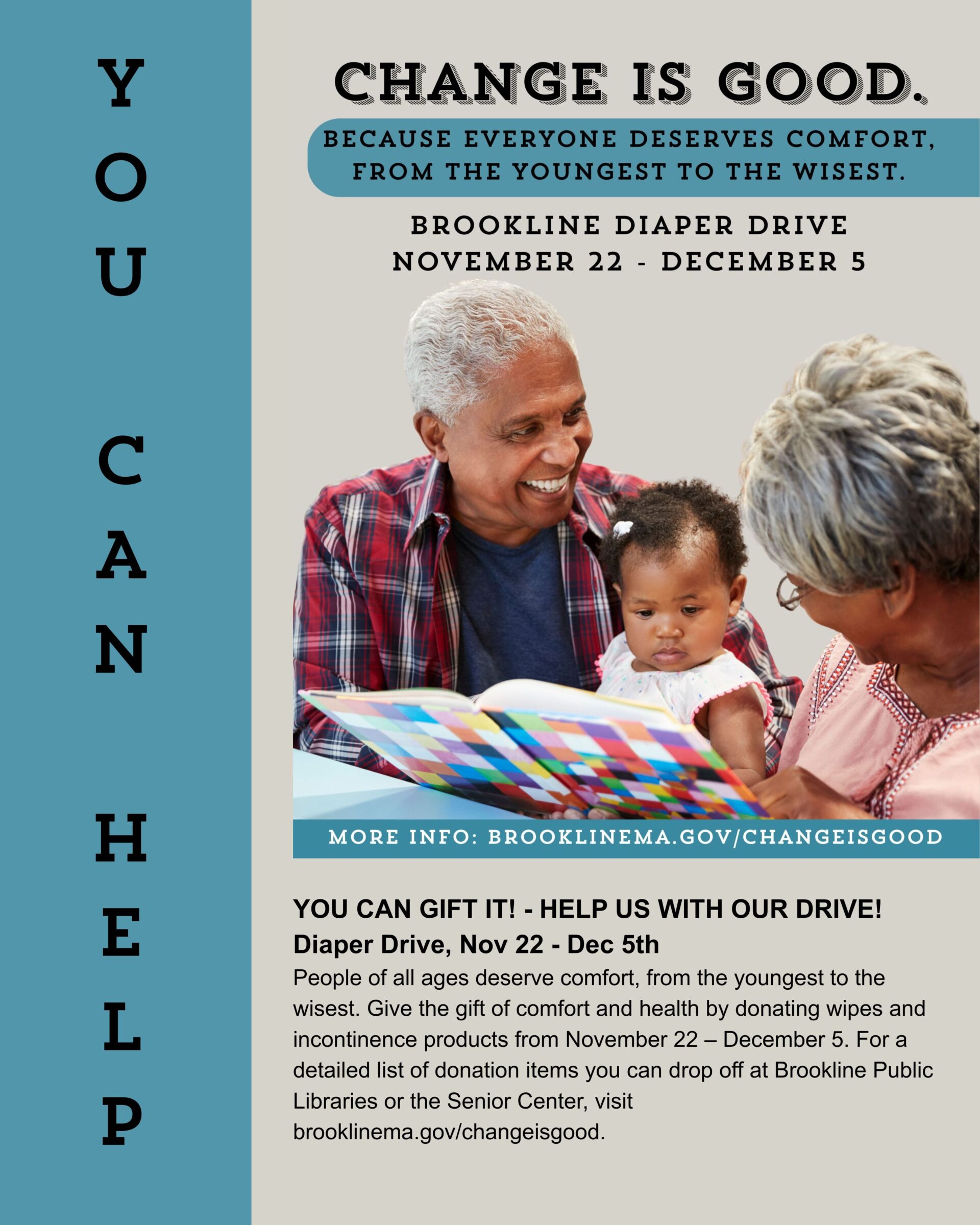 In observance of Christmas and New Year’s Day, the Brookline Senior Center will be closed on December 25 and January 1. No transportation (transport or medical) or food services will be available on those days.